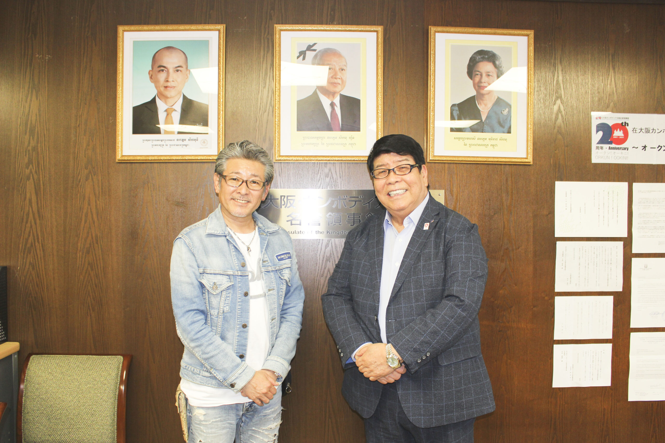 当日のゲストインタビュアーは、元「シブがき隊」メンバーのふっくん(布川 敏和さん)でした。昔と変わらず素敵な布川さんに、山田名誉領事もこの笑顔!
