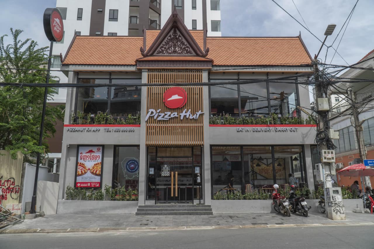 Pizza Hut parlour in Phnom Penh with its Khmer-inspired facade. Photo Credit: Pizza Hut Cambodia Facebook