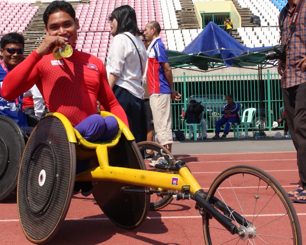Van Vun選手は、カンボジア・カンダール州出身です。3歳の時に患ったポリオのせいで、後遺症が残ったそうです。Van Vun選手は、2011年に車いす陸上競技を始めて以来、東南アジアパラ競技大会(ASEAN Para Games)や、2016年のリオ・パラリンピックにもカンボジア王国の代表として出場されています。