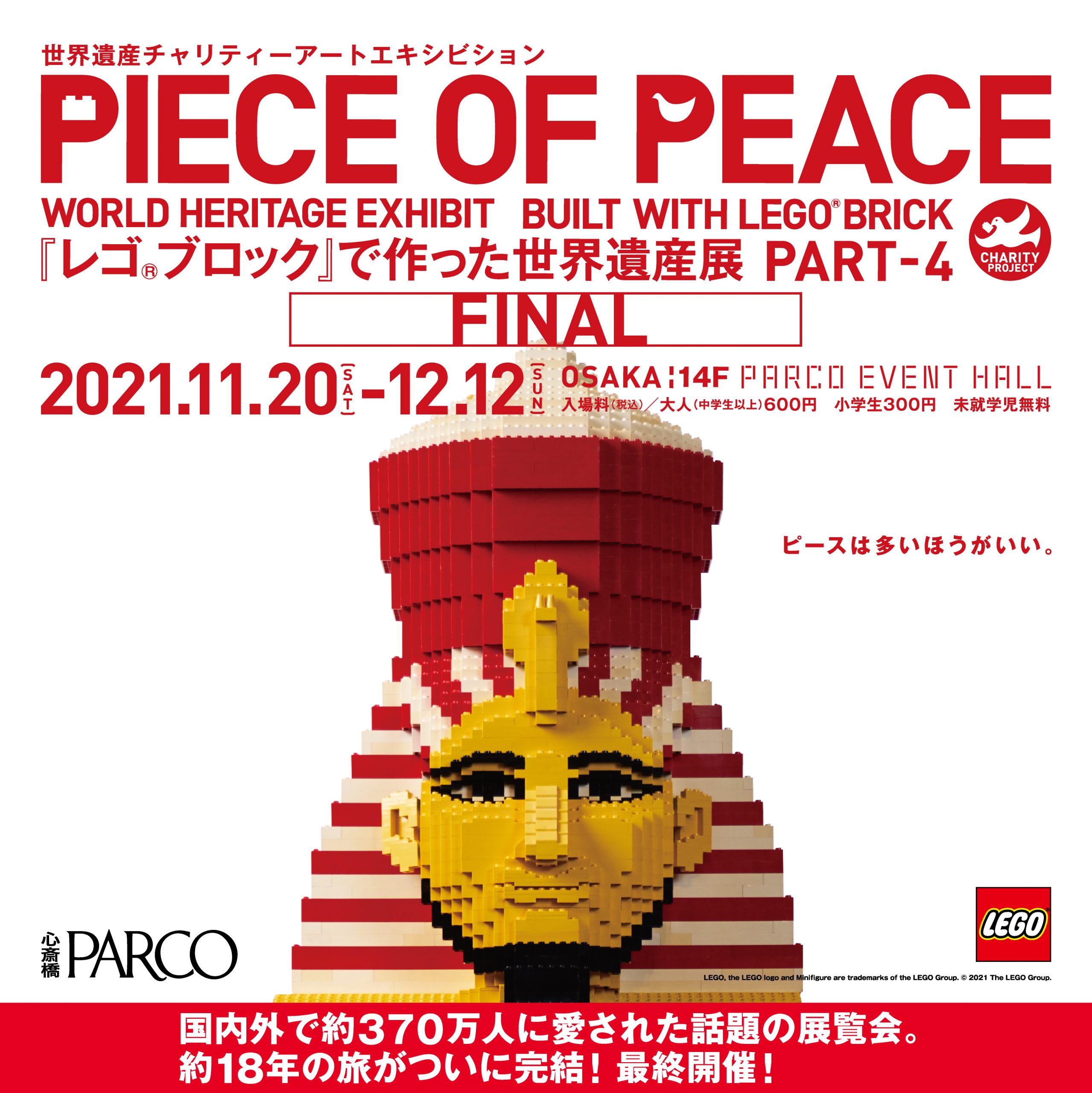 2021年11月20日(土)から12月12日(日)まで、大阪・心斎橋のPARCOにて、「PIECE OF PEACE『レゴ®ブロック』で作った世界遺産展 PART-4 FINAL」が開催されています。