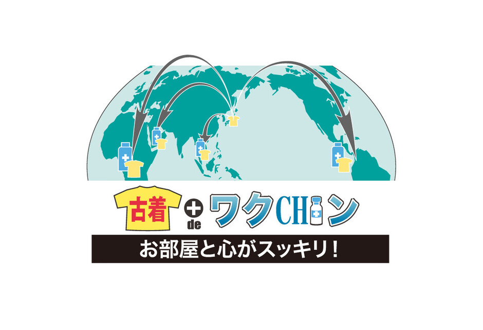 「古着deワクチン」とは、古着の集荷を通じて、開発途上国(ラオスやミャンマー、ブータンなど)へポリオワクチンを寄付するプロジェクトです。本プロジェクトは、古着の専用回収キット(3,300円 税込)購入代金及び古着販売の利益の一部が、NPO法人 「世界の子どもにワクチンを」日本委員会を通じて、開発途上国の子ども達へ寄付されるポリオワクチン(1口につき5人分のワクチン)となります。また、集荷された古着のうち、再利用できるものを開発途上国へ送付・現地で販売することにより、雇用が創出されます。