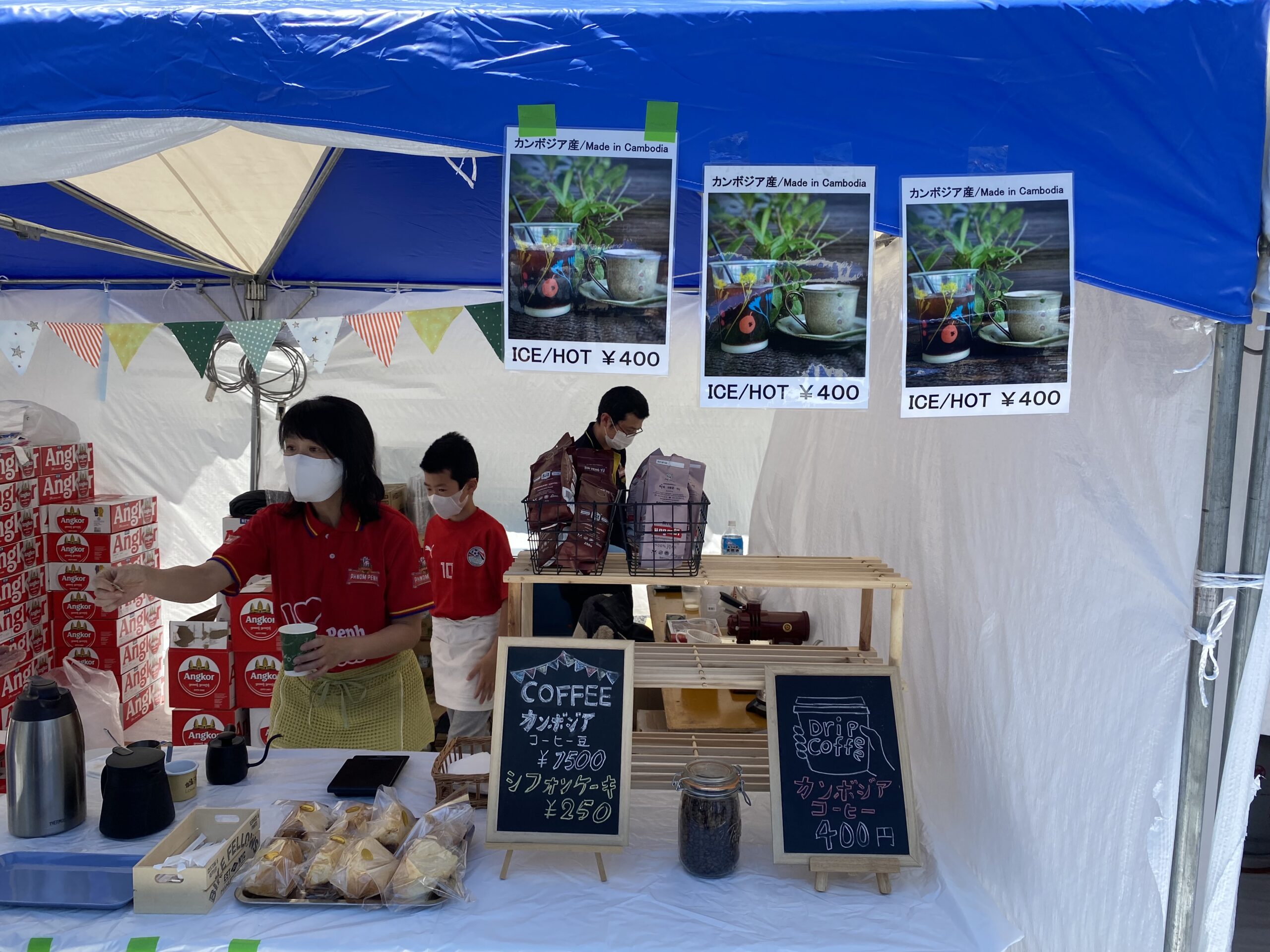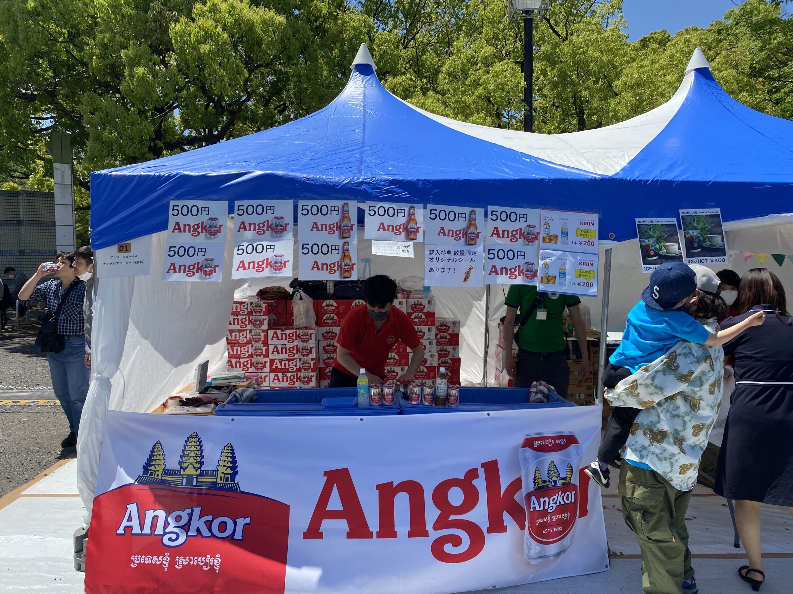 当日は、暑いぐらいの晴天でしたので、飲食ブースエリアでは大行列ができていました。カンボジアの「アンコールビール」を買われている方も数多くいらっしゃいました。せっかくですので、当館スタッフも、のどの渇きを癒すべく、美味しい「アンコールビール」とカンボジアコーヒーをいただきました!