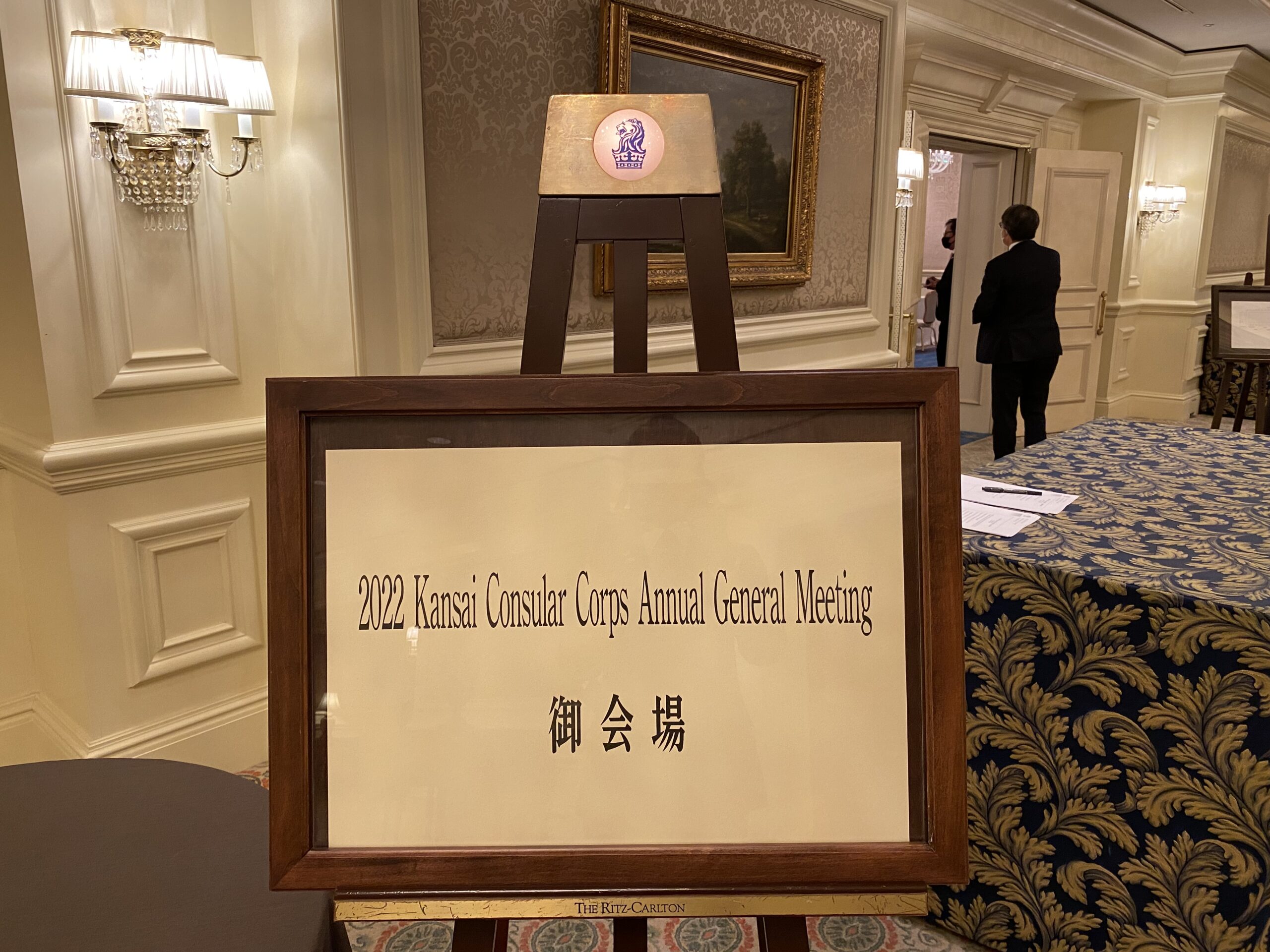 一昨年と昨年は新型コロナウィルスの影響で、年次総会は中止となったり、オンラインにて開催となったりしておりました。今年は3年ぶりに、ようやく対面での開催ができました。年次総会は「ザ・リッツカールトン大阪」ホテルで行われ、各国の総領事や名誉総領事、日本国外務省の関西担当大使の姫野氏が参加されました。