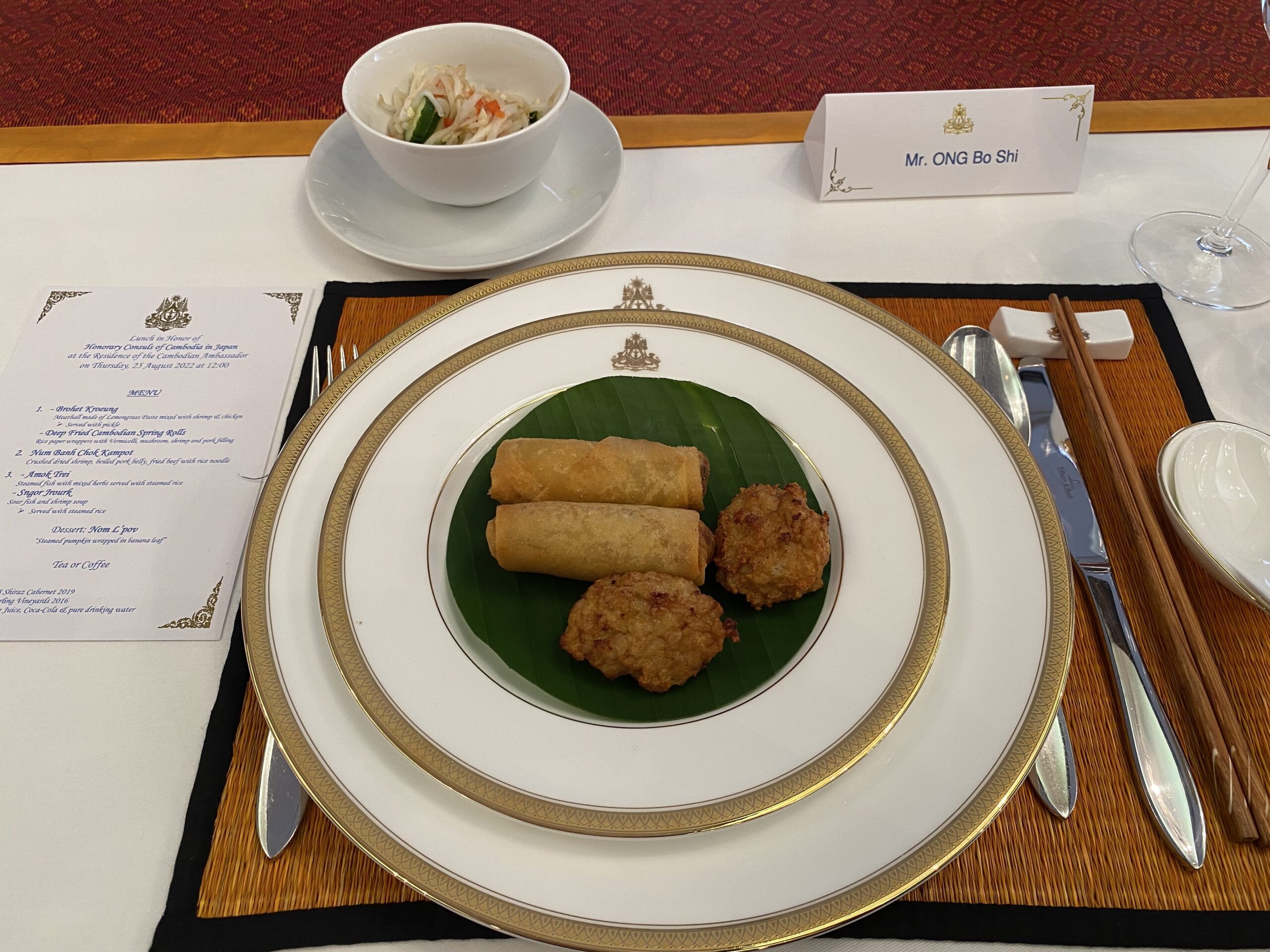 2022年8月25日(木)、当館スタッフが山田名誉領事の代理として、在日本国カンボジア王国大使館主催の昼食会に出席いたしました。