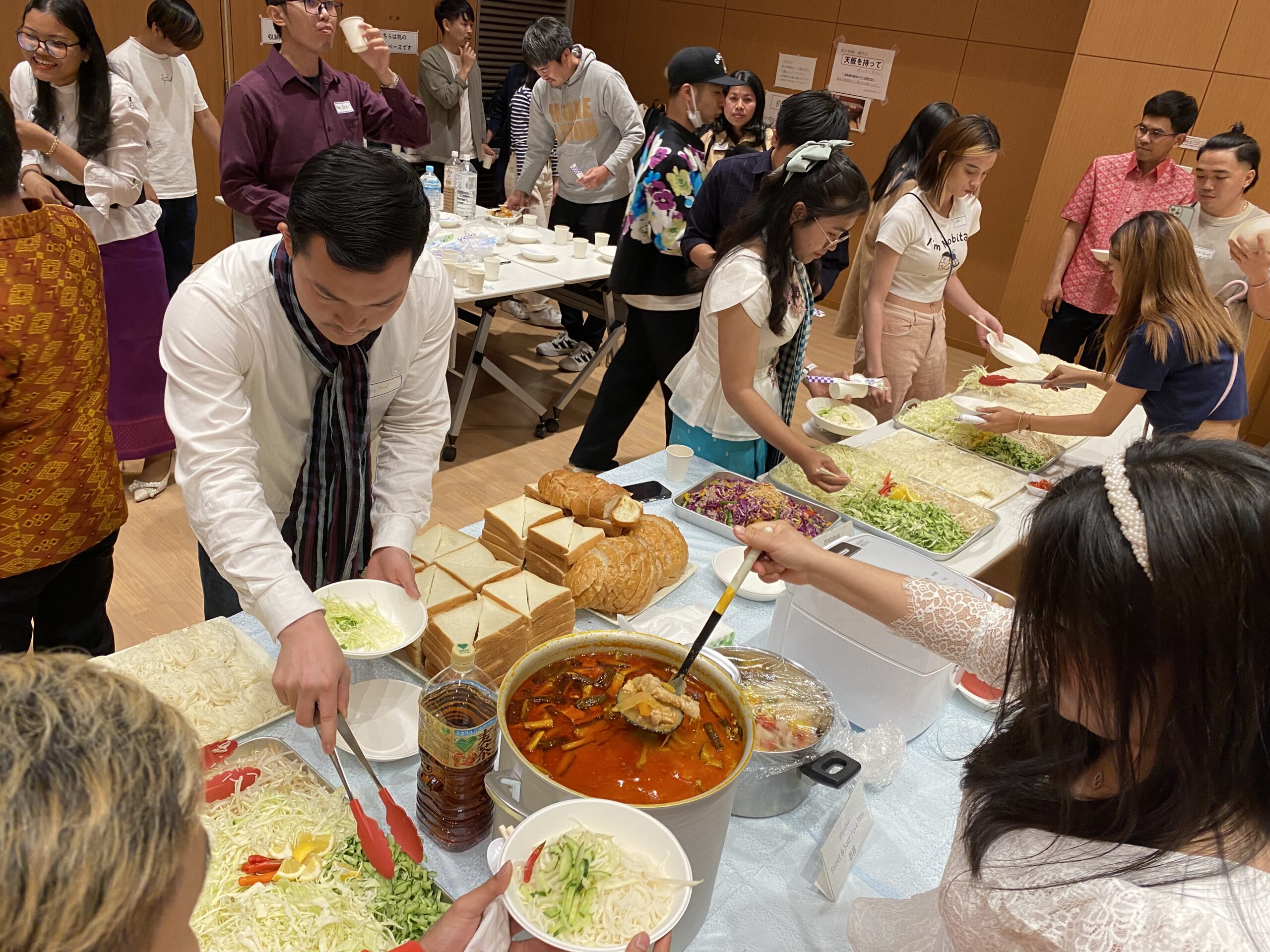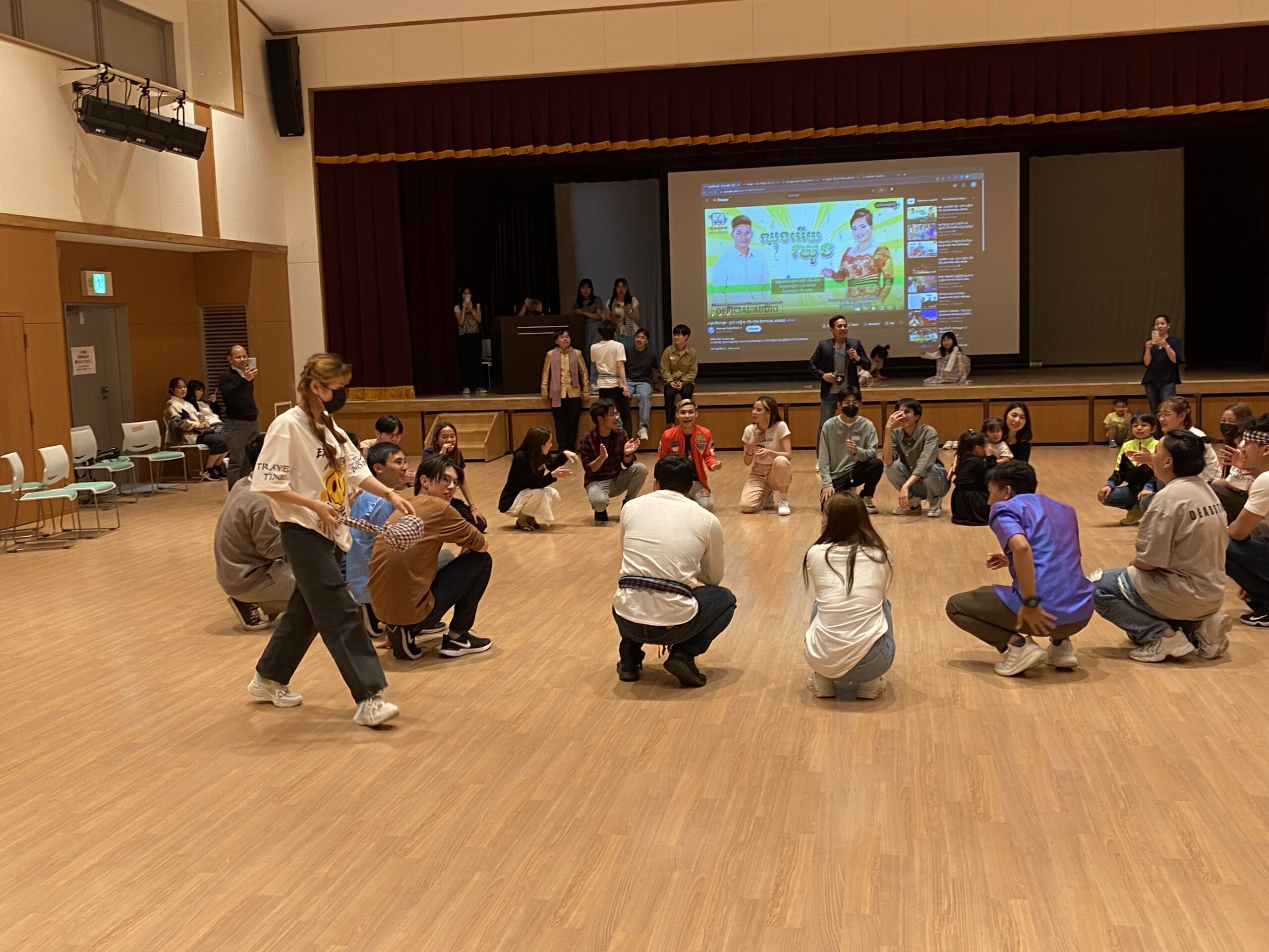 例年のカンボジアお正月パーティーと同じく、イベントでは、カンボジアお正月恒例の「トロットダンス」や新規カンボジア留学生の紹介、カンボジア伝統舞踊、伝統ゲームなどが催されました。また、イベントの会食で、カンボジア料理・スイーツを堪能することもできました。最後に、カンボジア踊りが行われ、カンボジア留学生と来場者の皆さんが会場ホールの真ん中に輪になって、楽しくカンボジアスタイルの踊りをされていました。