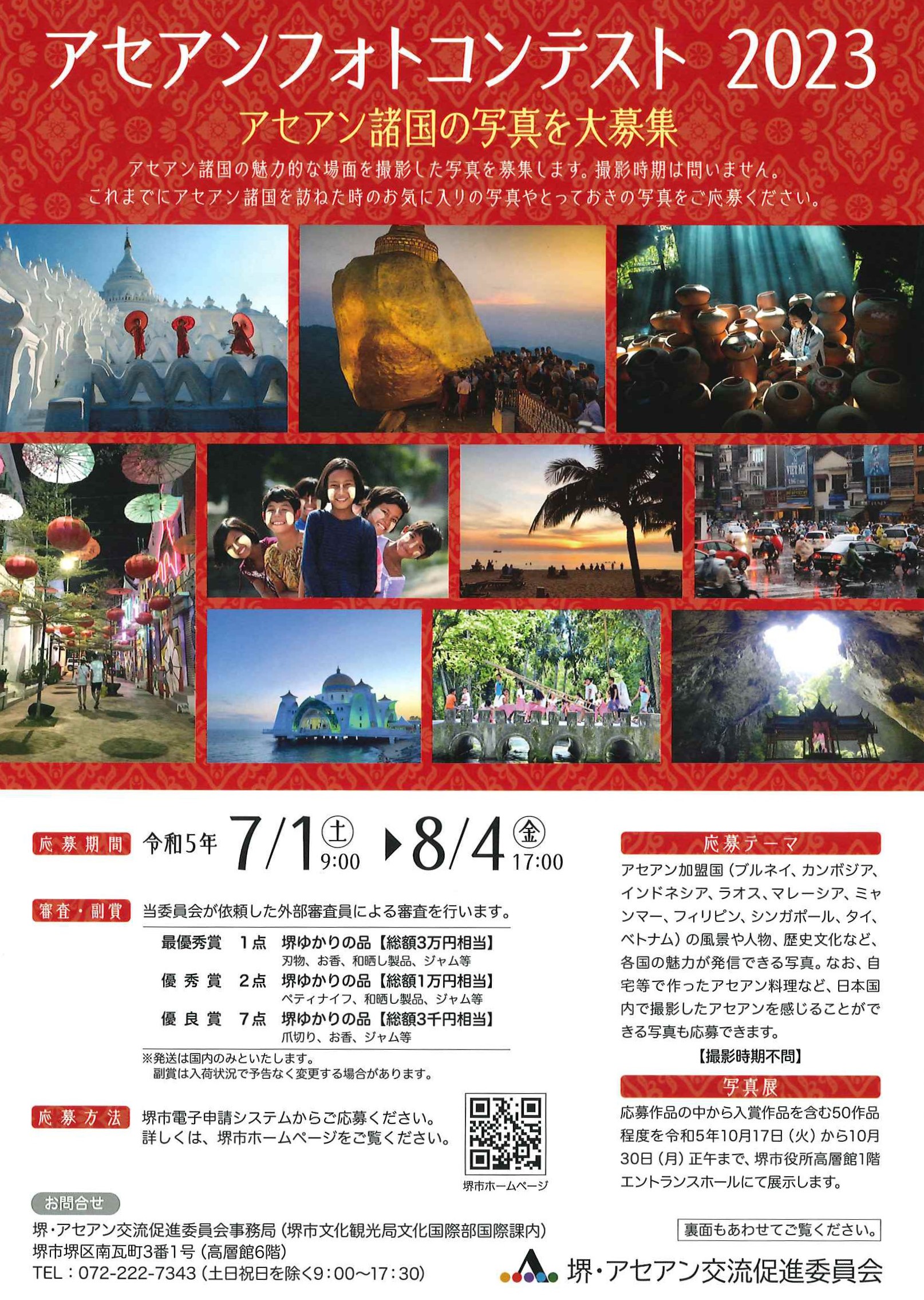 堺市役所(文化国際部国際課)主催の「アセアン・フォトコンテスト」は、今年も開催される予定で、現在写真作品を募集しております。